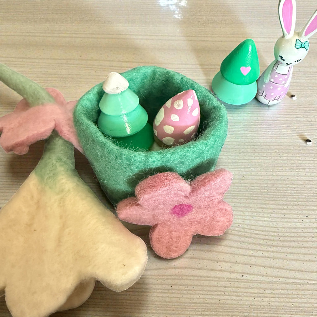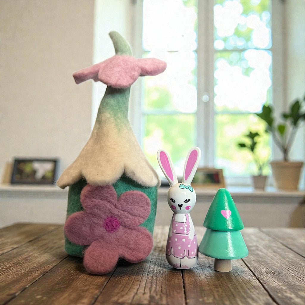 Felt home made by Himalayan Felt, with a small tree and gnome or bunny. removeable roof